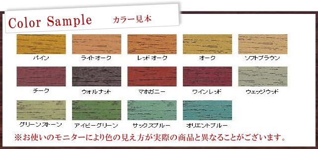 【塗り面積】 ・0.10〜0.15m2(タタミ0.06〜0.09枚分) 【乾燥時間】 夏期/10分〜20分 冬期/20分〜40分 水性ステインマーカー カラーサンプル