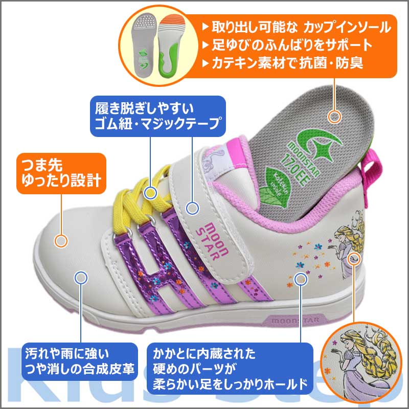 ムーンスター キャロット ディズニー プリンセス ラプンツェル 女の子 子供靴 キッズ スニーカー MS C2268 DN パープル 17〜21