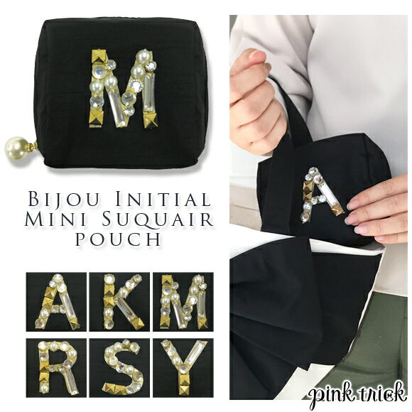 ビジュイニシャルミニスクエアポーチピンクトリック 可愛い ポーチ 小物入れ 化粧ポーチ メイクポーチ コスメポーチ かわいい おしゃれ 大容量 ナプキン たばこケース シガレットケース コスメ プレゼント ギフト