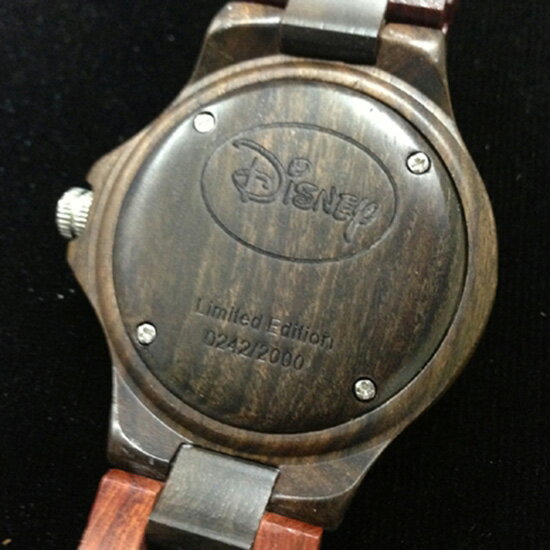 ディズニー 世界限定腕時計 ウッドミッキー 木のぬくもりと、時を重ねるに連れ、深まっていく色艶 世界中でわずか二千本しか存在しないミッキーのプレミアムウォッチ!ディズニーから世にも珍しい、裏蓋、ベゼル、ベルトまでもが木製の腕時計が登場です。